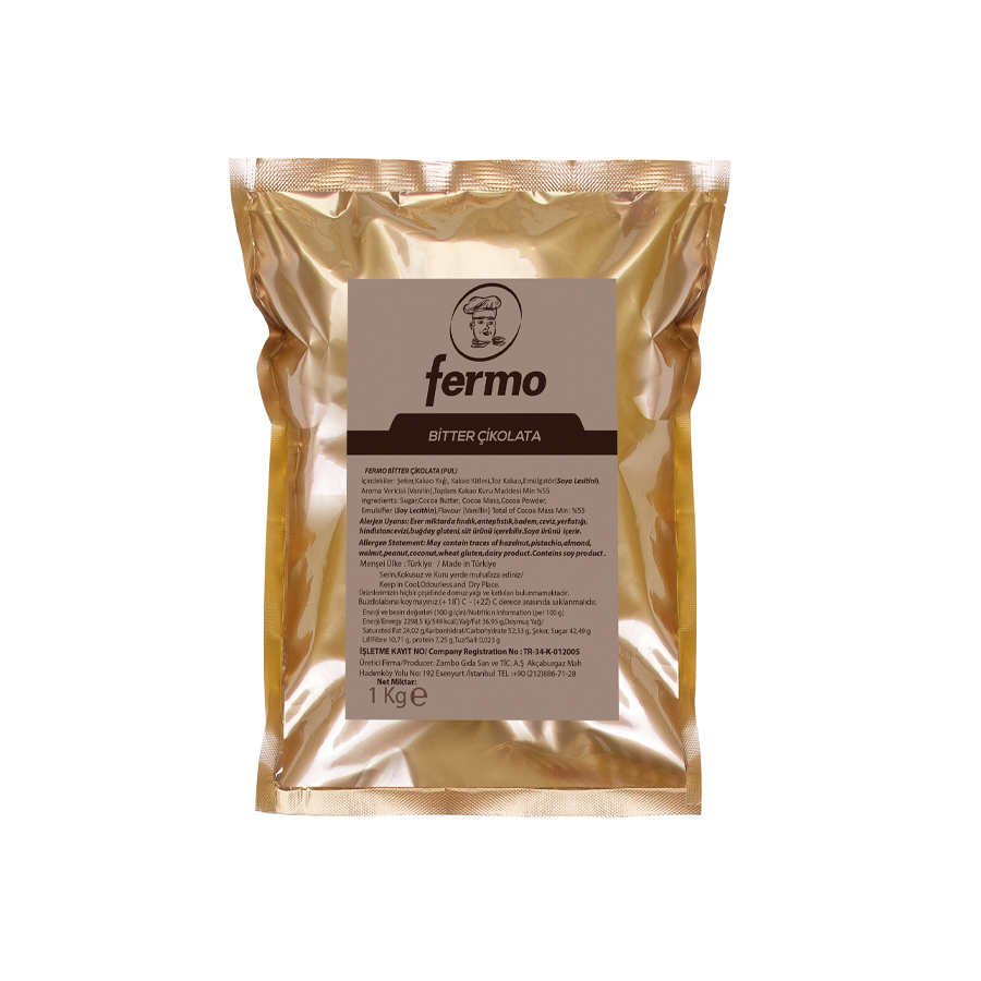 Geçmişin tecrübesi ve sürekli yenilik anlayışıyla en kaliteli hammaddelerle üretilen profesyonellerin seçimi ürünlerimizle yaratacağınız lezzetler ile fark yaratın! Bitter çikolatanın toplam kakao kuru maddesi %55 dir. Yoğun çikolata tadı, eritme kolaylığı, akışkanlığı ile pastacılıkta ve çikolata yapımında hayal ettiğiniz birçok ürünü gerçeğe dönüştürebilirsiniz. Çikolatayı benmari usulü 45°C – 50°C dereceye kadar ısıtıp eritebilirsiniz. Daha sonra sıcaklığının 28°C – 29°C dereceye düşmesini bekleyip rahatlıkla kullanabilirsiniz.